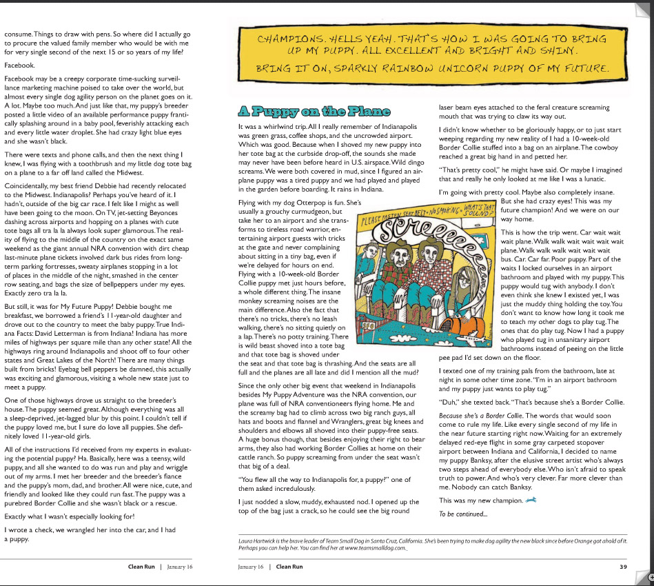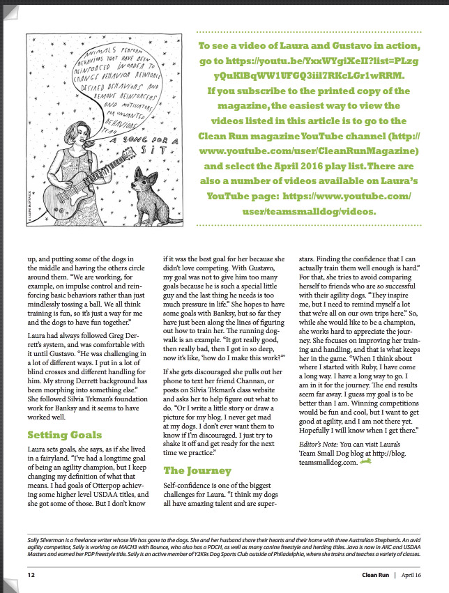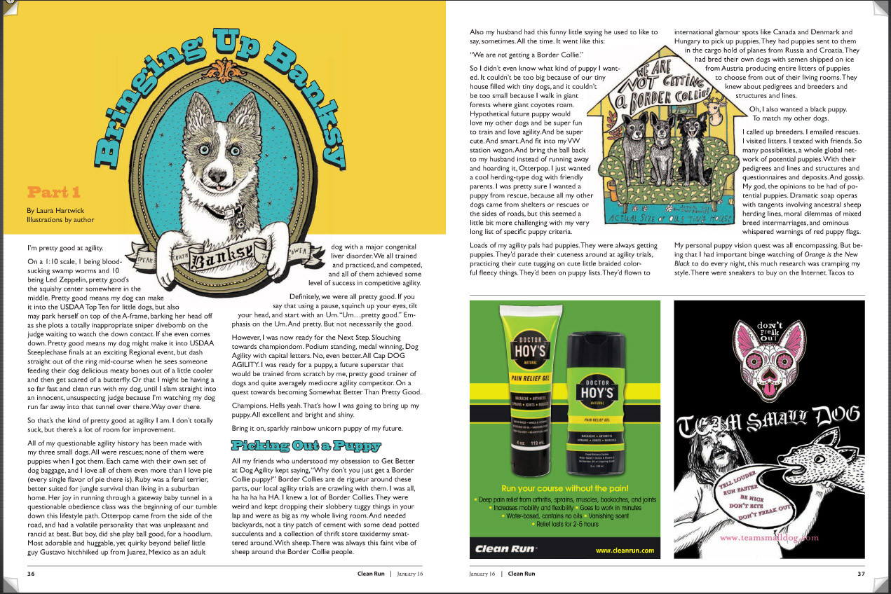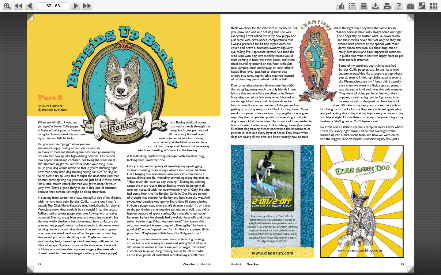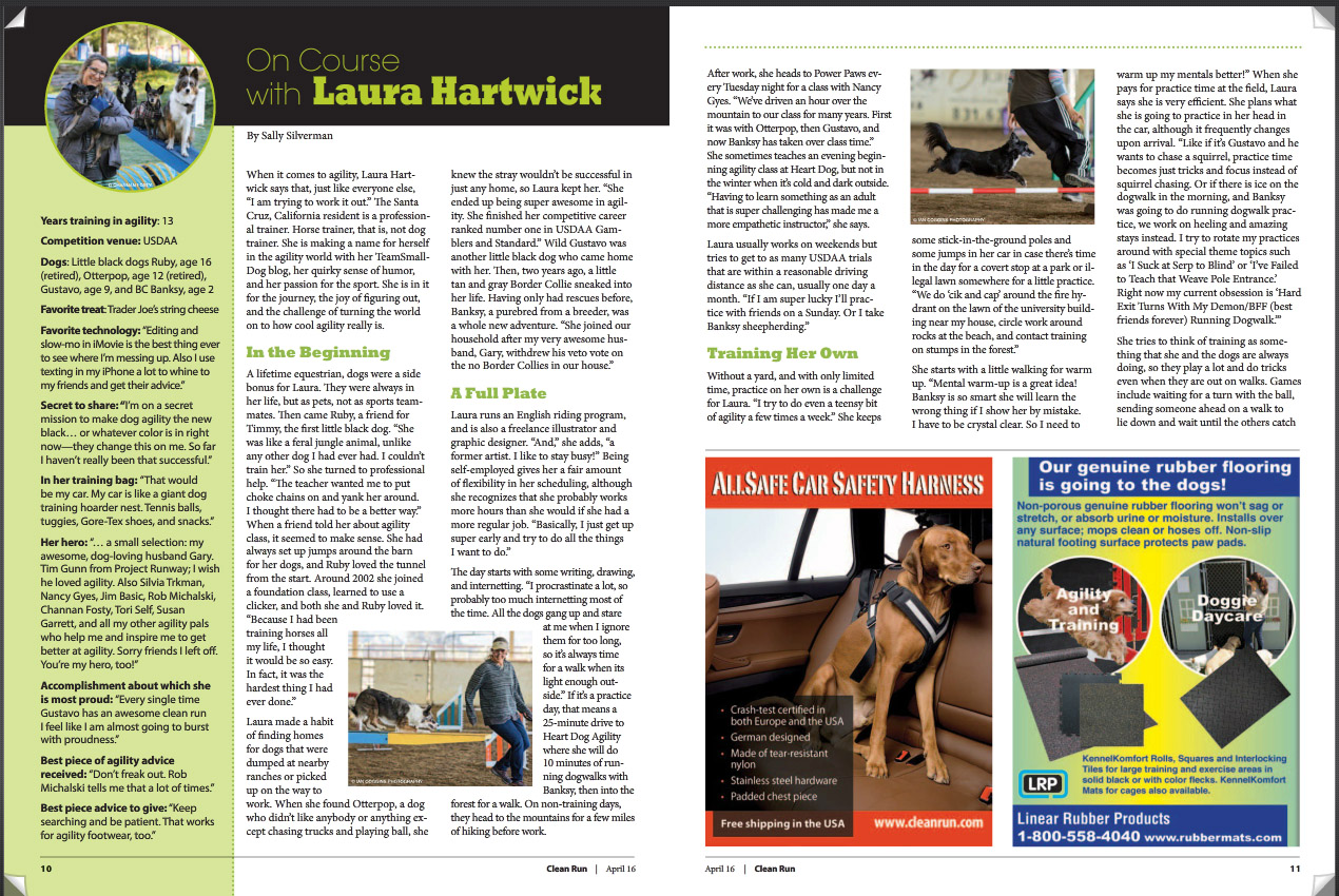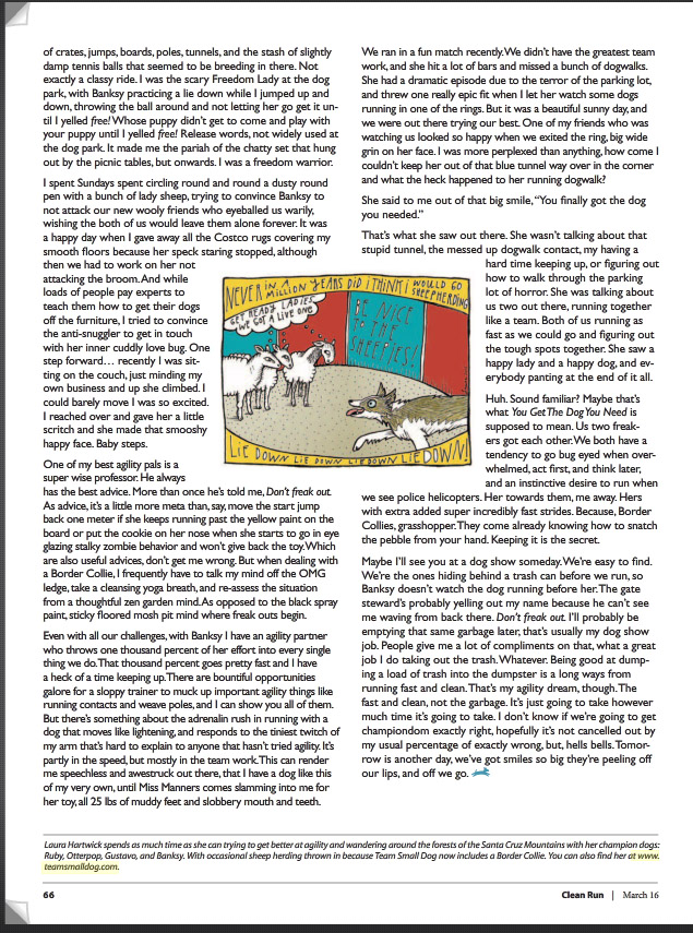 Laura is the Santa Cruz, CA based captain of this dog team and, ha, dig this: horse trainer, riding instructor, dog trainer, dog agility instructor, artist, writer, designer, and hiker of the redwood forests.